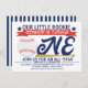 Die Baseball-Einladung dieses Jungen zum 1. Geburtstag ist einfach im Design. Es verfügt über einen Baseball, einen Baseballschläger, ein Banner und einige Sterne. Die Einladung dieses Jungen zum ersten Geburtstag zu Baseball ist bereit, personalisiert zu sein.