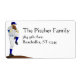 Dieses Adressetikett zeigt eine grafische Darstellung eines aufklappbaren Baseballpitchers.