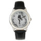 Uhr, Klassische Damenuhr mit schwarzen Lederarmband