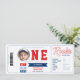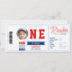 Feiern Sie den großen Tag Ihres kleinen Schlägers mit dieser Baseball-Einladung zum ersten Geburtstag mit dem Foto Ihres Kindes! Dieses Design ist wie ein klassisches Sportticket gestaltet und mit einer lustigen "Rookie des Jahres"-Schlagzeile sowie einer Vorlage für die "Spielerstats" versehen. Es beinhaltet eine Fotovorlage und ein spielerisches Ambiente. Mit seiner sanft blauen und roten Farbpalette und dem sportlichen Charme ist es die ideale Wahl für ein Party zum 1. Geburtstag eines Jungen. Voll anpassbar und ideal für Eltern, die einen Baseball-Geburtstag, ein Rookie-Party oder ein sportliches Meilenstein-Fest planen.