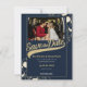 Vintage Baseball-Saison Pass Design in blau und gold, Save the Date mit Foto. Personalisieren Sie Text wie gewünscht.