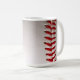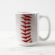 Ein Makrofoto eines nagelneuen Baseballs mit roter Naht. Perfektes Geschenk für den Baseball Softball-Freak oder Sportfanatiker.