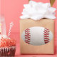 Ein Makrofoto eines nagelneuen Baseballs mit roter Naht. Perfektes Geschenk für den Baseball Softball-Freak oder Sportfanatiker.