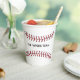 Cooler individueller Baseball-Liga-Party-Cup, der aussieht wie ein Ball mit Ihrem personalisierten Text in der Mitte. Fügen Sie einen Teamnamen für ein Party zum Ende der Saison oder den Geburtstag eines Spielers hinzu.