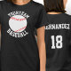 Erstellen Sie Ihren eigenen personalisierten Baseball-T - Shirt, indem Sie vorne Ihren Teamnamen (oder Schulnamen) und hinten den Spielernamen und die Jersey-Nummer eingeben. Sie können auch den Platzhaltertext löschen und auf der Rückseite Leerzeichen verlassen werden, wenn Sie es vorziehen. Die Farbe des Shirts, das derzeit auf schwarz Set ist, kann auch entsprechend der Teamfarben geändert werden. Sie sind auch eine gute Möglichkeit für Baseballmütter, Großmas, Freundinnen und andere Fans, Unterstützung für ihre Lieblings-Baseball-Spieler und -Teams zu zeigen!