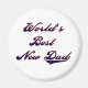 Navy blauer Text mit rotem Baseballstil lautet "World's Best New Dad" auf neuen Papa-T - Shirt, Mousepads, Tasse, Karten, Aufkleber, Schlüsselanhängern und vieles mehr!