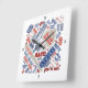 Baseball Typografie Red White Blue ID770 Quadratische Wanduhr