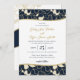 Elegante marineblaue und goldene Hochzeitseinladung mit variabler Hintergrundfarbe und bearbeitbarem Text.