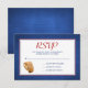 Eine klassische Baseball-thematische Hochzeitskarte RSVP. Mit einem Baseballhandschuhdesign in klassischen Blau-, Rot- und Weißtönen.