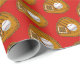 Umschlagpapier mit einem Baseballdruck auf rotem Hintergrund. Passen Sie dieses Objekt an oder kaufen Sie, wie es ist.