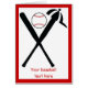 Baseball überquerte Fledermäuse und Kappe schwarz, rote, benutzerdefinierte Grußkarte ein minimalistisches Piktogramm-Symbol von schwarz gekreuzten Baseballschlägern, eine Kugel, eine Kappe und Ihr roter Text auf weißem Hintergrund mit rotem Rand.