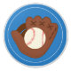 Dieser Griff für den Raum eines Jungen kennzeichnet einen braunen Baseball-Mitt, der einen Rot genähten Baseball hält. Das Bild wird auf einen blauen Hintergrund und beringt mit einer dünnen weißen Kreislinie gesetzt. Vervollkommnen Sie für jeden möglichen Jungen, der Liebebaseball!