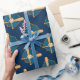 Baseballsymbol mit zwei Fledermäusen und einem Ball über einem blauen Schild. Nahtloses Muster.