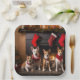 Basenji an der Weihnachtsfeier am Feuerplatz Pappteller
