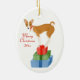 Ein niedlicher Basenji, der auf einem Haufen festlicher Geschenke herumschwebt, ist ein perfekter Ornament für einen Hundeliebhaber, vor allem für jemanden, der Basenji-Gewohnheiten kennt!