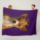 Welpe in Gold Crown Niedlich Fleece Blanket aus Ricaso. Ein bezaubernder Basenji Welpe auf einem lila Hintergrund. Ideal für Hunde- und Tierfreunde.