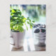 Ein Foto grüner Pflanze aus Basil in einer weißen Keramik Tasse.