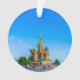 Basilische Kathedrale am Roten Platz in Moskau, Russland, gegen den blauen Himmel. Die Kathedrale ist auch als Vasily die gesegnete Kathedrale und als Kathedrale der Fürstenspaltung der Heiligsten Theotokos auf dem Moat bekannt. Sie wurde 1561 geweiht. Die Kathedrale hat keine Analogie in vorausgehender, zeitgenössischer oder späterer Architektur der Muskovy und byzantinischen Kulturtradition.