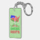 Baskisch American Roots Keyring. Karte der USA mit Fahnen des Baskenlandes und Amerikas gemischt mit dem Text Baskische Roots in rot und grün.
