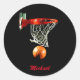 Basketball Artwork Ihr Name Schwarz Rot Runder Aufkleber