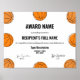 Mit unserem stilvollen, druckbaren und herunterladbaren Award feiern Sie Basketball-Exzellenz. Personalisieren Sie einfach Namen, Daten, Signaturen und weitere Komponenten für eine einzigartige Touch. Vielseitig für verschiedene Anlässe, wie z.B. Sportzeremonie von Wettkämpfen und Saisons für Teilnehmer und Spieler, ist dieses hochwertige Template ein Instant-Moral-Booster für Ihre Basketballgemeinschaft. Errungenschaften schnell mit unserem benutzerfreundlichen Design erkennen - herunterladen und drucken!