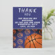 Basketball Ball Sport Geburtstag Danke Karte. Moderner Basketball Geburtstag Dankeschön für einen Jungen oder ein Mädchen, das Basketball Liebe. Basketballmuster mit verschiedenen orangefarbenen Basketballbällen.
