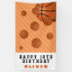 Basketball Balls Orange Kindergeburtstag Party Banner. Spaß und modernes Party Banner mit vielen Basketballbällen in verschiedenen Größen und orangefarbenem Hintergrund mit Streifen. Personalisieren Sie das Banner mit Ihrem Namen und machen Sie ein großartiges Geburtstagsbanner für einen Jungen oder ein Mädchen, das Basketball Lieben.