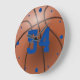 Die runde Wanduhr mit sportlicher Thematik, mit brauner Basketballgrafik und blauen Zahlen. Personalisieren Sie die große Zahl mit der Nummer Ihres Lieblings-Spielers.