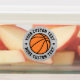 Rundaufkleber mit einem Basketball in der Mitte, in dem Ihr individueller Text umhüllt ist.