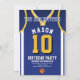 Feiern Sie Ihren besonderen Tag mit dieser Basketball Jersey Geburtstagseinladung, die für echte Basketballfans konzipiert ist! Mit seinem kühlen Jersey-Design, das durch die lila und goldenen Farbtöne inspiriert ist, eignet sich dieser Ort perfekt für Kinder, Jugendliche und Erwachsene, die das Spiel Liebe haben. Personalisieren Sie es einfach mit Ihrem Namen, Alter, Party-Details und sogar Teamnummer in nur wenigen Klicks. Erhältlich in mehreren Größen, bedruckt auf hochwertigem Papier mit einer breiten Palette von Oberflächen, die Ihrem Stil entsprechen. Wählen Sie aus verschiedenen Papiertypen, schnellem Drucken und schnellem Versand, damit Ihre Einladungen pünktlich eintreffen. Ob für ein sportliches Party oder ein Lakers Fan Fest - diese Einladung ist der ideale Ort, um Ihre Gäste zu begeistern.