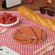 Party-Papier-Teller mit einer Abbildung von Basketball. Personalisieren Sie sie mit dem Namen Ihres Kindes und dem Text Ihrer Wahl für einen kompletten Look.