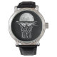 Uhr, Klassische Damenuhr mit schwarzen Lederarmband
