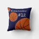 Basketball Sports Team Personalisiert Name und Nummer Navy blauer Hintergrund Kissen. Ein tolles Geschenk für Ihr Basketballteam. Fügen Sie eine passende Sports Theme Tasse oder Magnet für Ihre Familie und Freunde hinzu. Coole Geschenke für sportliche Räume. Ideal für alle Jungs Mädchen Männer und Kinder. Team, Trainer, "Wahnsinn des März", Ball, Court, Number, hoop, net, fan Teammate,sport,game,basketball