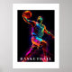 Das Poster wird mit einem Foto eines Basketballspielers angezeigt. Passen Sie dieses Objekt an oder kaufen Sie, wie es ist. Lizenziertes Bild