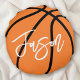 Runder Kissen mit schwarz-orangefarbenem Basketball und weißem Namen. Alle Farben sind im Designwerkzeug anpassbar.