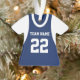 Blaue und weiße Basketballmannschaft sportliche Trikots mit individuellem Foto, Teamname und Nummer.