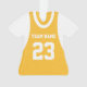 Die Basketballmannschaft aus Gold und Weiß spielt auf Trikot mit Teamname und Nummer.