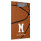 Diese individuell anpassbare Basketball-Zwischenablage für den Trainer oder den Teamstatistiker zeigt das Bild eines Basketballs mit einem "Kiesel"-Detailakzent auf den Panels - die Farbe der Basketballfelder KANN durch Klicken auf die blaue Schaltfläche "Design bearbeiten" geändert werden - personalisieren Sie mit dem Monogramm oder dem Buchstaben und Namen des Trainers - von katz_d_zynes