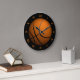Großartiges Design für Ihre Wand. Ball farbige Zahlen auf schwarzem Hintergrund um einen Basketball herum. Ein oder aus dem Haus - es macht eine tolle Uhr