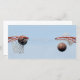 Basketballs, einer, der in den Hoop tritt, einer, der den Hoop für eine Partitur verlässt. Raum in der Mitte für Text.