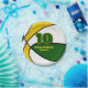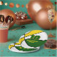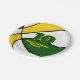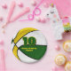 Diese Basketball-Party-Platte für einen Basketball-Geburtstag oder ein Team-Party zeigt das Bild eines Basketballs, der abwechselnd grün, weiß und goldfarben ist - den Text in Grün und Gold - von katz_d_zynes
