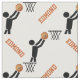 Basketball-Spieler mit Kugel und Ihrem Namen personalisierte Gewebe, das ein minimalistisches Symbol einer schwarzen Silhouette eines Basketballspielers zeigt, der versucht, den orangefarbenen Ball in den Basket und Ihren Text auf weißem Hintergrund zu setzen. Einige Elemente mit freundlicher Genehmigung von vectorportal.com.