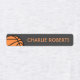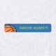 Bekleidungsetiketten mit einem Basketball auf grünblauem und zwei Säulen mit grauem Hintergrund. Vorlagenfelder für Ihren Namen oder anderen benutzerdefinierten Text.