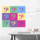 Magst du Musik-Kunst? Dieses Poster hat ein Muster von Bassklemmen in lila, gelb, grün, blau und rosa.
