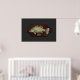 Auf diesem Bild befindet sich eine Basswand-Trophäe aus Streifen, in der ein Bass aus Süßwasser mit einem Namensschild unter dem Fisch dargestellt wird, der auf einer Holzplakette angebracht ist.