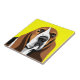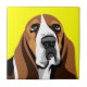 Basset Hound mit großer Ohrkunst auf gelbem Hintergrund, die auf Ihre Wohngestaltung angepasst werden kann