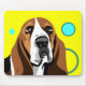 Hundekunst Basset Hound auf gelbem Hintergrund mit Kreisen
