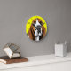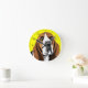 Basset Hound mit traurigen Augen auf einem gelben Hintergrund, der angepasst werden kann, können die Farbe der Uhrnummern und Punkte auch geändert werden