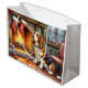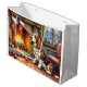 Basset Hound Fireplace with Christmas Lights Große Geschenktüte