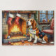 Basset Hound Fireplace with Christmas Lights Puzzle